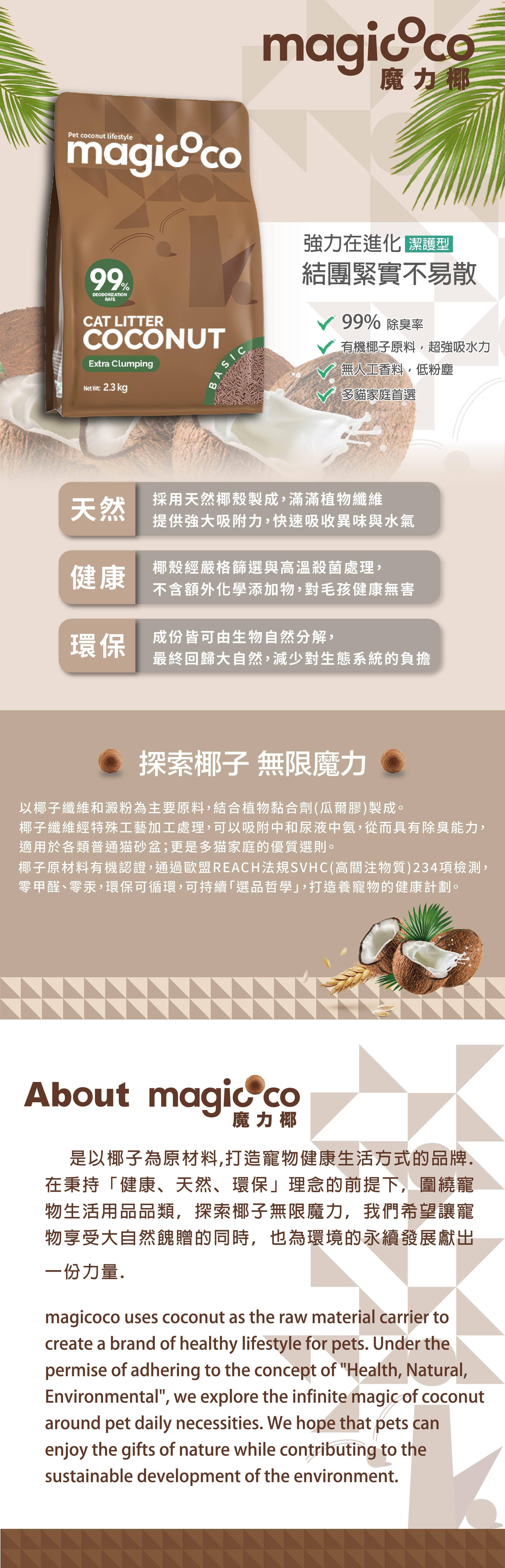 【貓用_強力結團】Magicoco魔力椰 [天然椰子貓砂_潔護型] 2.3kg